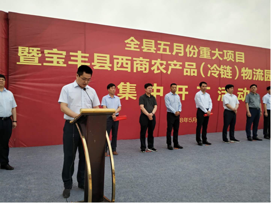 5月29日上午,公司承建的河南寶豐西商農(nóng)產(chǎn)品(冷鏈)物流園項目舉行隆重的開工儀式。平頂山市副市長劉文海、寶豐縣縣委書記趙水才、安徽西商集團董事長黃勇、公司總經(jīng)理助理、經(jīng)營公司經(jīng)理張露、四分公司經(jīng)理費勤波出席了開工儀式。