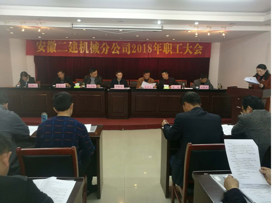 大會聽取并審議通過了《機械分公司工作報告》、《機械分公司財務(wù)工作報告》、《分公司2017年度業(yè)務(wù)招待費使用情況報告》。分公司工作報告全面總結(jié)了2017年生產(chǎn)經(jīng)營管理工作,對2018年經(jīng)營發(fā)展形勢進行研判,明確提出了分公司2018年度工作目標和工作重點。報告指出,2018年是全面貫徹黨的十九大精神的開局之年,是改革開放40周年,是決勝全面建成小康社會、實施“十三五”規(guī)劃承上啟下的關(guān)鍵一年,也是我們二建公司全面復(fù)興的決勝之年。2017年度機械分公司在公司各級領(lǐng)導的關(guān)懷和指導下,堅持安全生產(chǎn),努力完成公司年度經(jīng)濟指標,凝心聚力,克服工作中的各種困難,確保機械設(shè)備安拆的安全和質(zhì)量,在資金緊張,收款困難的前提下,完成了年初公司制定的各項經(jīng)濟指標。