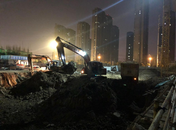 一年之季在于春。為確保楓林源筑直屬項(xiàng)目2018年生產(chǎn)工作開(kāi)好頭、起好步。2月23日,年味依在,項(xiàng)目部積極組織開(kāi)展復(fù)工工作,消除節(jié)后綜合癥,以飽滿的精神投入到緊張而有序的工作中。經(jīng)過(guò)項(xiàng)目部統(tǒng)籌安排,2月25日上午,施工現(xiàn)場(chǎng)5臺(tái)大型挖掘機(jī),30輛自卸車,進(jìn)行7#、12#樓土方開(kāi)挖,9#樓二層墻柱鋼筋綁扎也在有條不紊進(jìn)行中,施工現(xiàn)場(chǎng)人頭攢動(dòng),機(jī)械轟鳴,標(biāo)志著節(jié)后復(fù)工已全面啟動(dòng)。