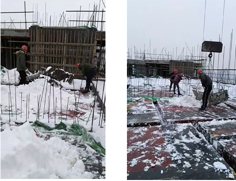 隨著“大干60天生產(chǎn)競(jìng)賽”的圓滿結(jié)束,宿州市于元月4日迎來了第一場(chǎng)大范圍強(qiáng)降雪。持續(xù)了兩天的大雪使整個(gè)宿州籠罩在一片白色之中,道路全部被阻斷,現(xiàn)場(chǎng)施工也一度停滯。為做好極端天氣下建筑施工的安全生產(chǎn)工作,一方面項(xiàng)目部緊急成立應(yīng)急小組,對(duì)暴雪造成的安全隱患進(jìn)行全面排查,尤其對(duì)生活區(qū)、樓層外架、現(xiàn)場(chǎng)臨時(shí)用電、起重設(shè)備等進(jìn)行專項(xiàng)檢查,及時(shí)清理積雪、消除隱患;另一方面為保證雪后施工的正常開展,項(xiàng)目部動(dòng)員管理人員對(duì)樓頂現(xiàn)澆面的積雪進(jìn)行清理,為下一步的安全生產(chǎn)提供及時(shí)的工作面。