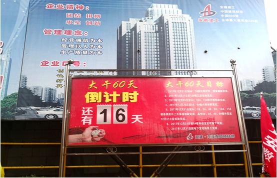 一是強化管理。項目部根據(jù)大干目標(biāo),制定一系列考評辦法,明確細(xì)化責(zé)任,充分調(diào)動全體職工和班組積極參與大干 “六十天”施工高潮中,攻堅克難圓滿完成大干總目標(biāo);二是按照大干 “六十天”活動目標(biāo)詳細(xì)部署施工計劃,對生產(chǎn)任務(wù)進行詳細(xì)分解,將分部分項工程倒排工期,利用調(diào)度會時由各工區(qū)長通報日進度;三是領(lǐng)導(dǎo)班子統(tǒng)一思想、轉(zhuǎn)變思路,因12#樓受拆遷影響,經(jīng)常與拆遷戶產(chǎn)生摩擦,為不影響進度,項目部要求12#樓施工班組見縫插針迅速投入到勞動競賽中去,投點放線全部任用年輕技術(shù)骨干負(fù)責(zé),強有力保障現(xiàn)場施工進度;四是施工技術(shù)管理人員每天深入生產(chǎn)一線,隨時掌握當(dāng)天生產(chǎn)施工進展情況和施工中存在的問題,及時采取措施,協(xié)調(diào)落實;五是在施工大門處安放“大干60天”倒計時牌,讓大家有緊迫感和責(zé)任感,同時要求各科室及勞務(wù)班組緊緊圍繞公司開展的大干 “六十天”勞動競賽,已安全質(zhì)量為核心,強化監(jiān)管,確保安全文明施工再掀施工高潮。