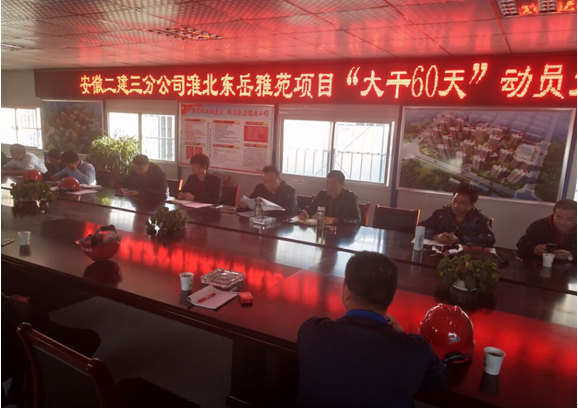 近日,三分公司積極落實(shí)《關(guān)于組織開展“大干六十天”勞動(dòng)競賽的通知》二建【2017】130號(hào)文,成立了以馬福才副經(jīng)理為組長,其他班子成員為副組長,各科室負(fù)責(zé)人、項(xiàng)目經(jīng)理為成員的勞動(dòng)競賽領(lǐng)導(dǎo)小組。邀請(qǐng)公司副總經(jīng)理葉和永參加分公司生產(chǎn)例會(huì),會(huì)上宣讀了公司下達(dá)的通知及各項(xiàng)目任務(wù)指標(biāo),強(qiáng)調(diào)此次勞動(dòng)競賽的重要意義。會(huì)議對(duì)各在建項(xiàng)目的生產(chǎn)任務(wù)進(jìn)行梳理、細(xì)化,明確了難點(diǎn)和重點(diǎn),要求各項(xiàng)目特別是項(xiàng)目經(jīng)理要提高認(rèn)識(shí)、充分調(diào)動(dòng)項(xiàng)目全員的積極性,倒排計(jì)劃、精心組織、正視困難、迎難而上,迅速掀起項(xiàng)目施工生產(chǎn)大干的熱潮。要求各職能科室加大宣傳力度,多深入項(xiàng)目,對(duì)各項(xiàng)目全面、順利完成公司下達(dá)的任務(wù)指標(biāo)而給與幫助、指導(dǎo)、監(jiān)督、協(xié)調(diào)、服務(wù)。會(huì)上強(qiáng)調(diào),分公司機(jī)關(guān)、各項(xiàng)目一定要發(fā)揮共產(chǎn)黨員的先鋒模范作用,青年突擊隊(duì)的引領(lǐng)作用,帶領(lǐng)全員埋頭苦干,以更加飽滿的熱情、更加有效的搶工措施、更加扎實(shí)的工作作風(fēng)來迎接本次勞動(dòng)競賽。