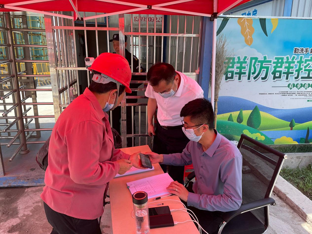 崔書斌深入現(xiàn)場(chǎng),對(duì)人員進(jìn)場(chǎng)排查、場(chǎng)所消毒、核酸檢測(cè)及操作防護(hù)等工作進(jìn)行督查,他與疫情值班同事共同對(duì)入場(chǎng)人員進(jìn)行“兩碼”核驗(yàn)及體溫測(cè)量,并要求項(xiàng)目部嚴(yán)格落實(shí)防疫政策,時(shí)刻緊繃疫情防控這根弦,做好科學(xué)防控,把牢方向,統(tǒng)籌安排,加大細(xì)節(jié)把控,切實(shí)做到防疫、生產(chǎn)兩不誤。