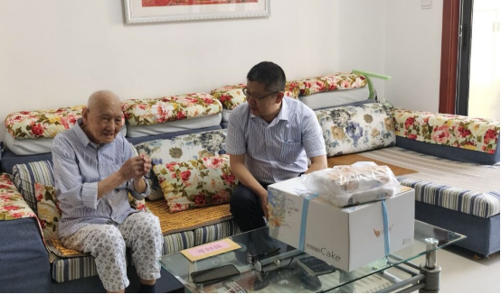 王淑德首先來到離休老黨員李輝同志家中,親切慰問了這位參加過抗日戰(zhàn)爭的老戰(zhàn)士老黨員。李輝老人,1945年參軍,1946年入黨,享受離休老干部待遇。通過與老人交談,了解到老人家庭基本情況,同時對老人的健康狀況進行了了解。老人今年104歲高齡,身體健康,思維清晰。大家向老人介紹當前建工控股的發(fā)展情況,肯定老人在戰(zhàn)爭、和平時期對國家所做的貢獻,祝愿老人健康長壽、家庭和睦、萬事如意。今天正值老人104歲生日,王淑德一行為他送去生日蛋糕和慰問金,祝福老人生日快樂、健康長壽。