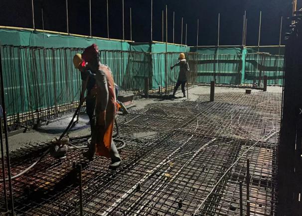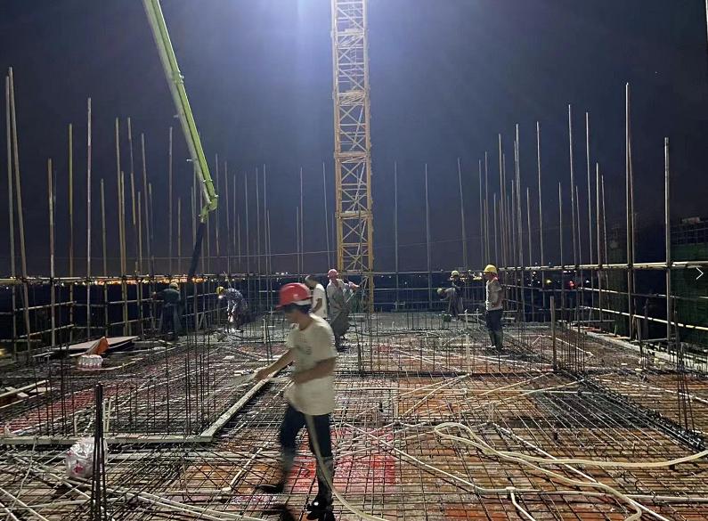 石塘火龍社區(qū)項(xiàng)目夜間澆筑混凝土