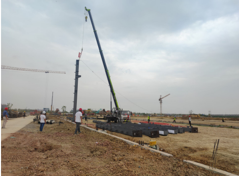8月16日上午8點28分,長豐新能源汽車配套產(chǎn)業(yè)園項目2#廠房鋼結(jié)構(gòu)吊裝施工儀式正式開始。項目管理人員對現(xiàn)場人、材、機等各項資源進行合理調(diào)配,精心組織安排,順利完成了對長10.5米,重4噸的第一根柱的吊裝工作,標志著項目從基礎(chǔ)施工正式步入吊裝階段。