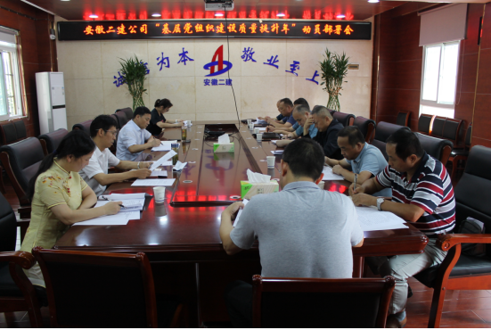 9月2日上午,安徽二建公司在一樓會議室召開了“基層黨組織建設(shè)質(zhì)量提升年”活動動員部署會,公司黨委副書記、工會主席王軍主持會議并做工作安排,黨委工作部主任、所屬各黨支部書記參加會議。
